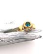 Ein Turmalin in einer außergewöhnlichen Farbe, eingebettet in einen ungewöhnlichen Ring ist doch mal etwas! Den ganzen Ring habe ich aus 750 Gelbgold gearbeitet, nur eine große Öse, die frei beweglich um die Steinfassung schwingt, ist aus Weißgold gefertigt.