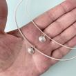 Runder Silberdraht ist gleichmäßig um ein nylonbeschichtetes Seil gewickelt. Dadurch entsteht eine klare, ruhige Linie mit mattem Schimmer. Der Reif wirkt reduziert und modern – genau die richtige Bühne für Anhänger, ohne sich selbst aufzudrängen. Diese Ausführung hat einen Durchmesser von 2,0 mm und bringt etwas mehr Präsenz an den Hals.